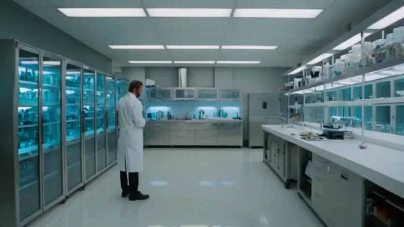 Una figura solitaria en un laboratorio estéril